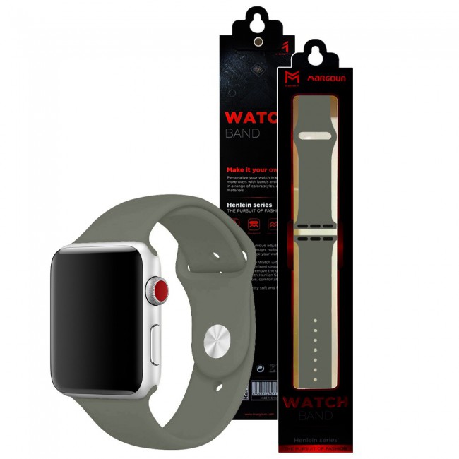 Apple Watch Band 42-44-45mm Strap Soft Silicone Sport Band Henlein Series by Margoun - Khaki Soft Silicone 42-44-45mm
