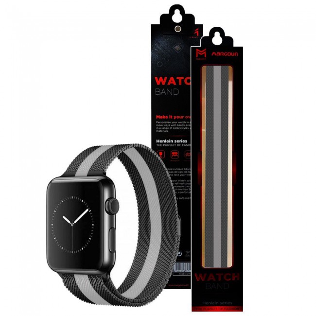 Apple Watch Milanese Loop Band 42-44-45mm Henlein Series by Margoun - Black and Grey Milanese 42-44-45mm