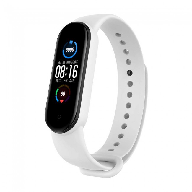Silicone Replacement Strap Band for Xiaomi Mi Band 5 and Mi Band 6 - White