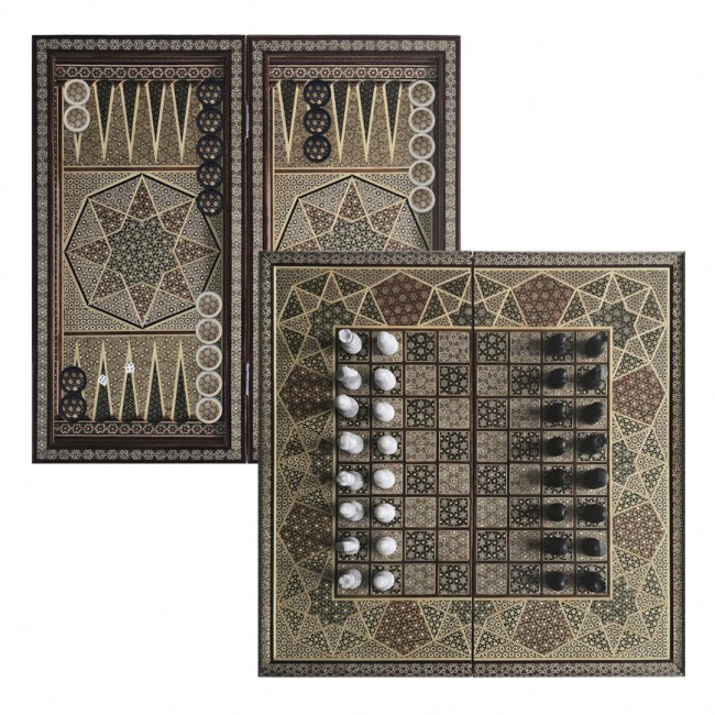 The MARGOUN 2-in-1 Handmade Chess & Backgammon Board combines traditional Persian artistry with timeless gameplay. This luxury game set features exquisite Khatamkari inlay work, a centuries-old Persian craft that involves meticulously arranging tiny pieces of wood, bone, and metal into intricate geometric patterns. Each board is handcrafted by skilled artisans, making every piece unique. The foldable design allows you to enjoy both chess and backgammon on a single board, whilst also serving as a stunning decorative piece when displayed in your home. The wooden construction ensures durability and a premium feel, whilst the compact folding mechanism makes storage and transport convenient. Whether you're a serious player or simply appreciate fine craftsmanship, this board game set brings elegance to your gaming experience. Perfect for family gatherings, entertaining guests, or as a distinguished gift for board game enthusiasts who value artistry and quality. The detailed Khatamkari patterns showcase the rich cultural heritage of Persian decorative arts, transforming an ordinary game night into an extraordinary experience.