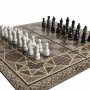 The MARGOUN 2-in-1 Handmade Chess & Backgammon Board combines traditional Persian artistry with timeless gameplay. This luxury game set features exquisite Khatamkari inlay work, a centuries-old Persian craft that involves meticulously arranging tiny pieces of wood, bone, and metal into intricate geometric patterns. Each board is handcrafted by skilled artisans, making every piece unique. The foldable design allows you to enjoy both chess and backgammon on a single board, whilst also serving as a stunning decorative piece when displayed in your home. The wooden construction ensures durability and a premium feel, whilst the compact folding mechanism makes storage and transport convenient. Whether you're a serious player or simply appreciate fine craftsmanship, this board game set brings elegance to your gaming experience. Perfect for family gatherings, entertaining guests, or as a distinguished gift for board game enthusiasts who value artistry and quality. The detailed Khatamkari patterns showcase the rich cultural heritage of Persian decorative arts, transforming an ordinary game night into an extraordinary experience.