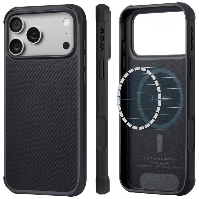 Pitaka for iPhone 17 Pro Max Case , Compatible with MagSafe, Thin & Light Case with a Caseless Feel, 600D Aramid Fiber Woven [Ultra Slim-Black/Grey (Twill)Black iP 17 pro max