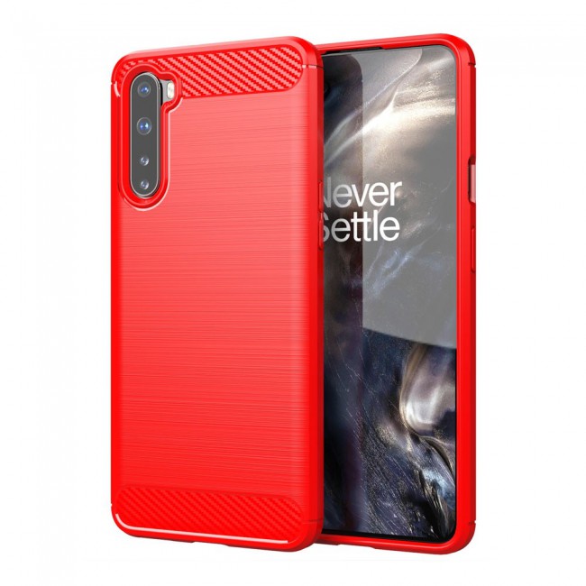 Protective Brushed Carbon Fiber Case Cover for OnePlus Nord - Red