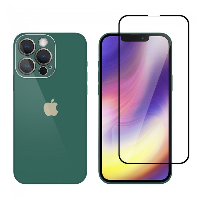 2Pack Margoun Glossy Hard Case Cover with 3D Screen Protector for iPhone 13 Pro - Green غطاء صلب لامع لهاتف آيفون 13 برو