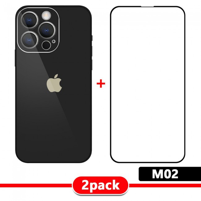 2Pack Margoun Glossy Hard Case Cover with 3D Screen Protector for iPhone 13 Pro Max - Black غطاء صلب لامع لهاتف آيفون 13 برو ماکس
