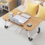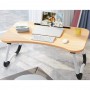 Foldable Laptop Table with Tablet Slot and Cup Holder - Beige