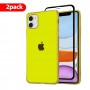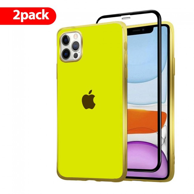 2Pack Hicool Glossy Hard Cover and 3D Screen Protector for iPhone 12 and 12 Pro - Yellow غطاء صلب من هيكول وواقي شاشة ثلاثي الأبعاد لآيفون 12و 12برو