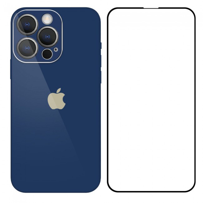 2Pack Margoun Glossy Hard Case Cover with 3D Screen Protector for iPhone 13 Pro Max - Dark Blue غطاء صلب لامع لهاتف آيفون 13 برو ماکس