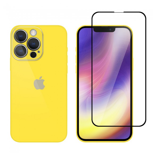 2Pack Margoun Glossy Hard Case Cover with 3D Screen Protector for iPhone 13 Pro Max - Yellow غطاء صلب لامع لهاتف آيفون 13 برو ماکس