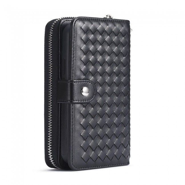 Knitted Leather Wallet Case for iPhone 12 Pro Max - Black