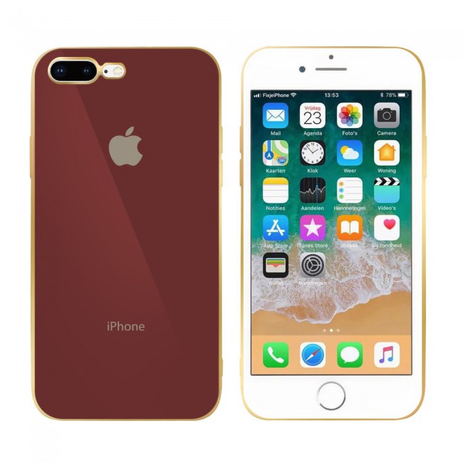 iphone 7 Plus and 8 Plus Case Cover Gold Edge Hicool - Red Gold edge